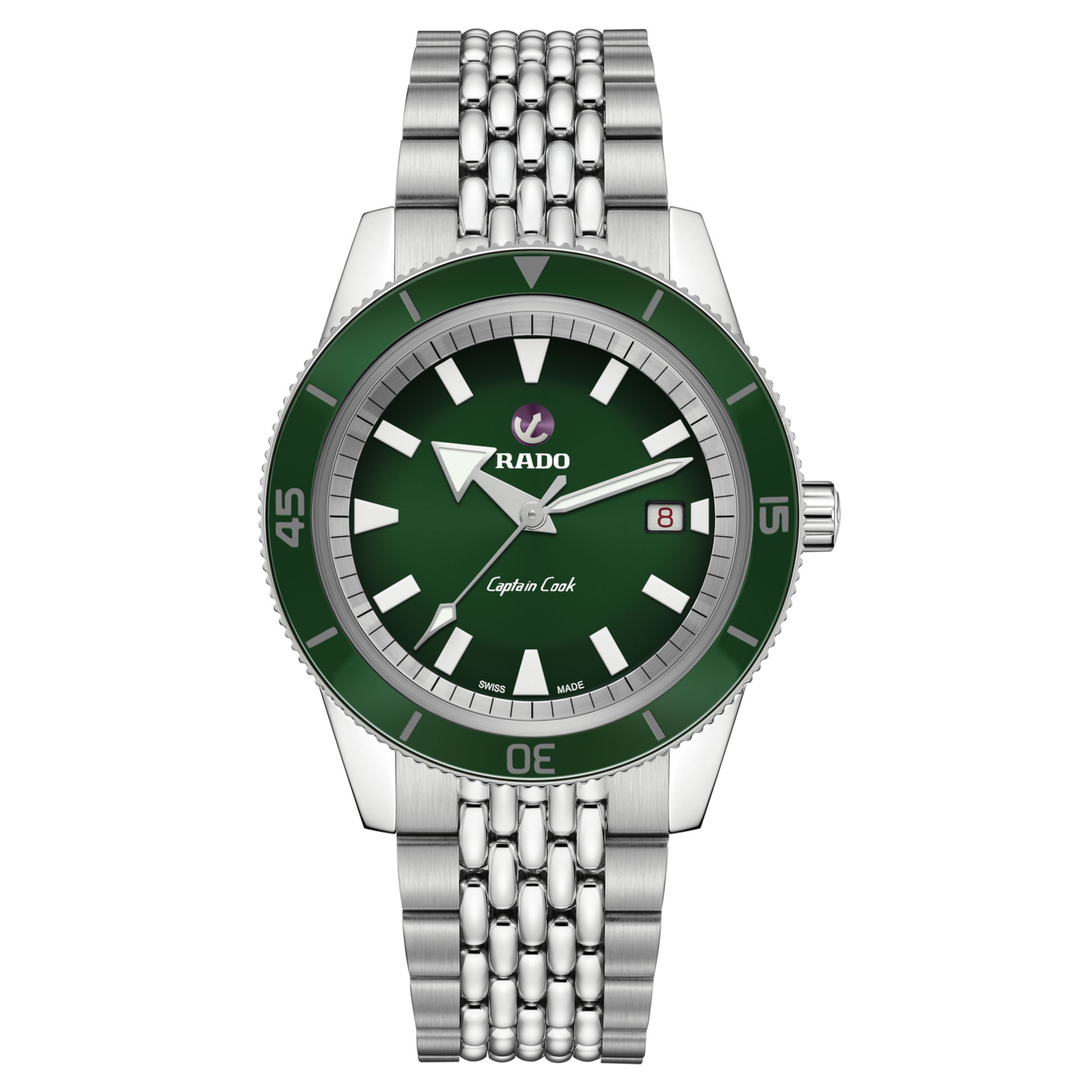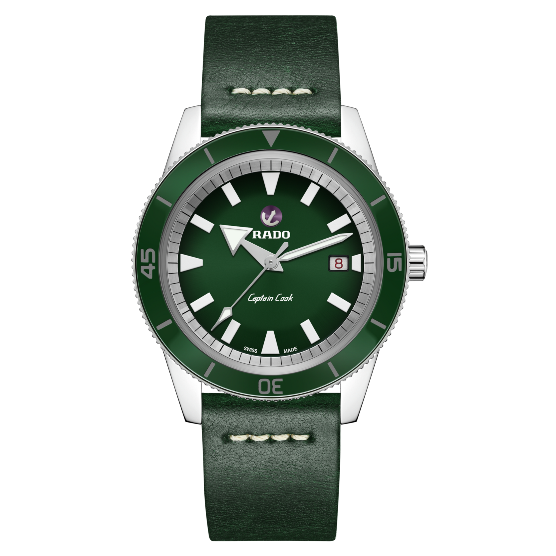An original look from 1962 is brought to life in a new and improved form for the twenty-first century. With vintage details and styling true to the original, and up-to-date features that make it a match for modern wearers, Captain Cook is a watch designed to stand the test of time. The Captain Cook is delivered in a hard-wearing leather travel pouch with a selection of additional straps which allows you to change with Rado’s EasyClip System the bracelet or strap quickly and easily without the need for any tools.