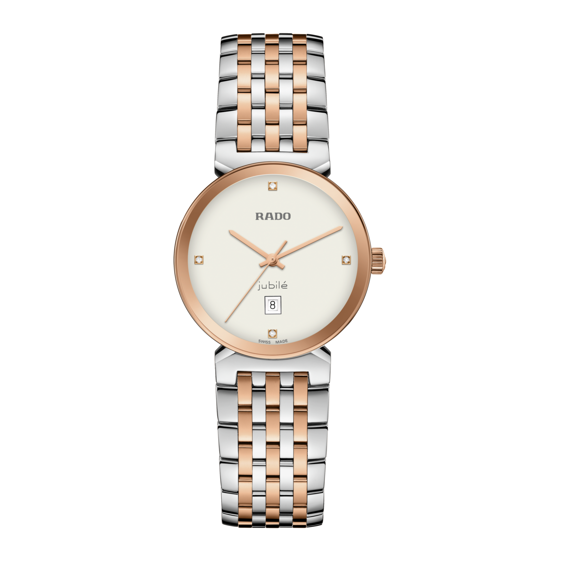 The harmonious design of the Rado Florence Classic calls to mind the elegant domes and towers of the city from which the collection takes its name. With quality quartz movements and innovative Rado edge-to-edge metallised sapphire crystal, these are Swiss-made pieces designed to stand the test of time. Rhodium-plated hands glide above four full-cut diamonds set as indexes at hours 3, 6, 9 and 12. Their sparkling presence is underscored and celebrated in the new Florence Classic collection by the return of the famous Jubilé logo.