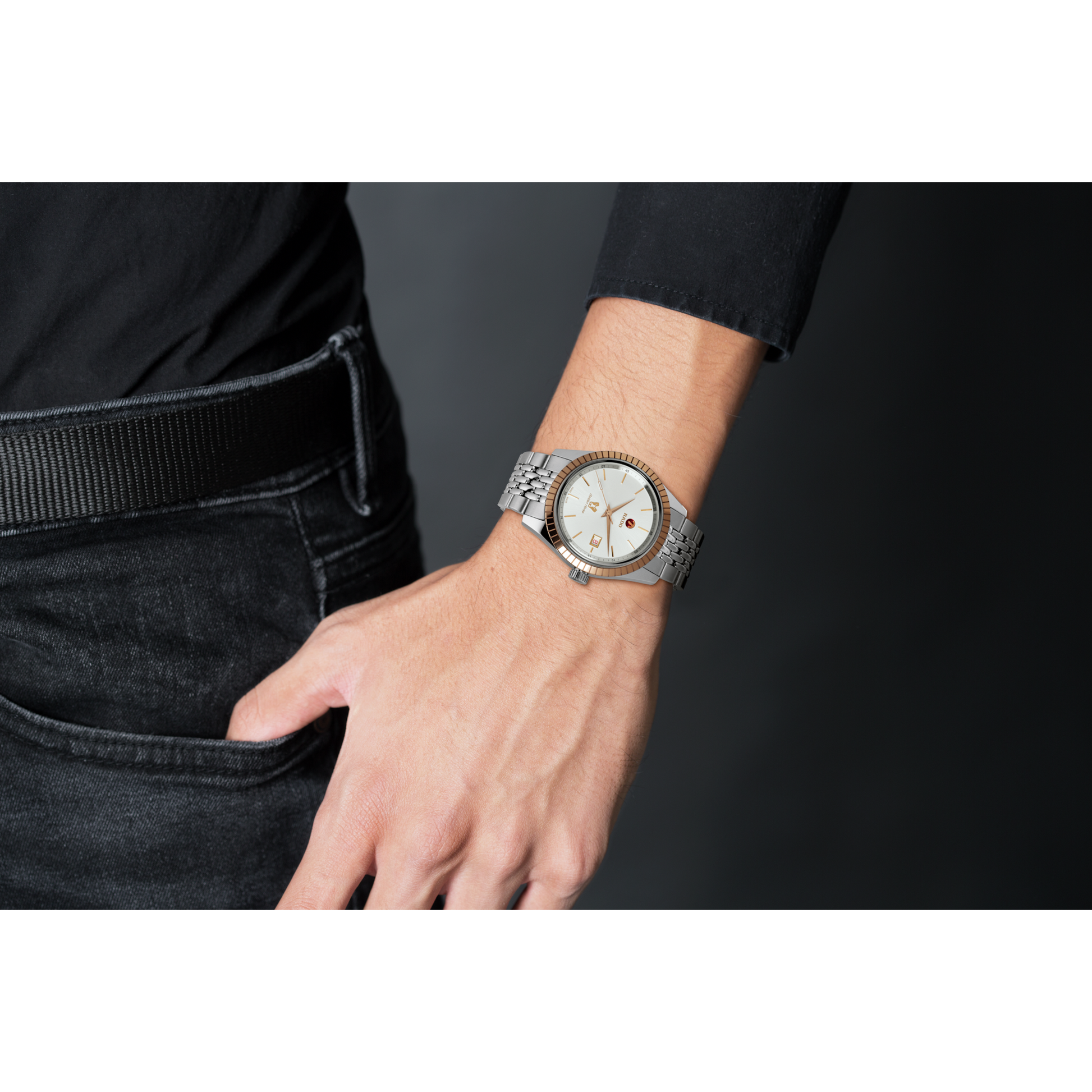 Inspired by the 1957 original, the new Golden Horse is a strong design statement and a truly versatile contemporary timepiece. Featuring elements in pioneering plasma high-tech ceramic and rose gold coloured Ceramos, it’s a unique look that is still distinctly Rado.
