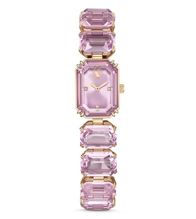 Ideal for contemporary women, this watch from the Millenia collection by SWAROVSKI is sure to impress you. Functional on a quartz movement, it displays plain 2-hand functionality and a 24-hour time display bezel function. Expertly crafted from a row of octagon-cut crystals, it features a sapphire glass centrepiece. It is water-resistant up to 50 m. This eye-catching bracelet watch is a playful choice for solo styling or layering.The bracelet length is 16.5 cm. Case size: 23 mm x 17 mm