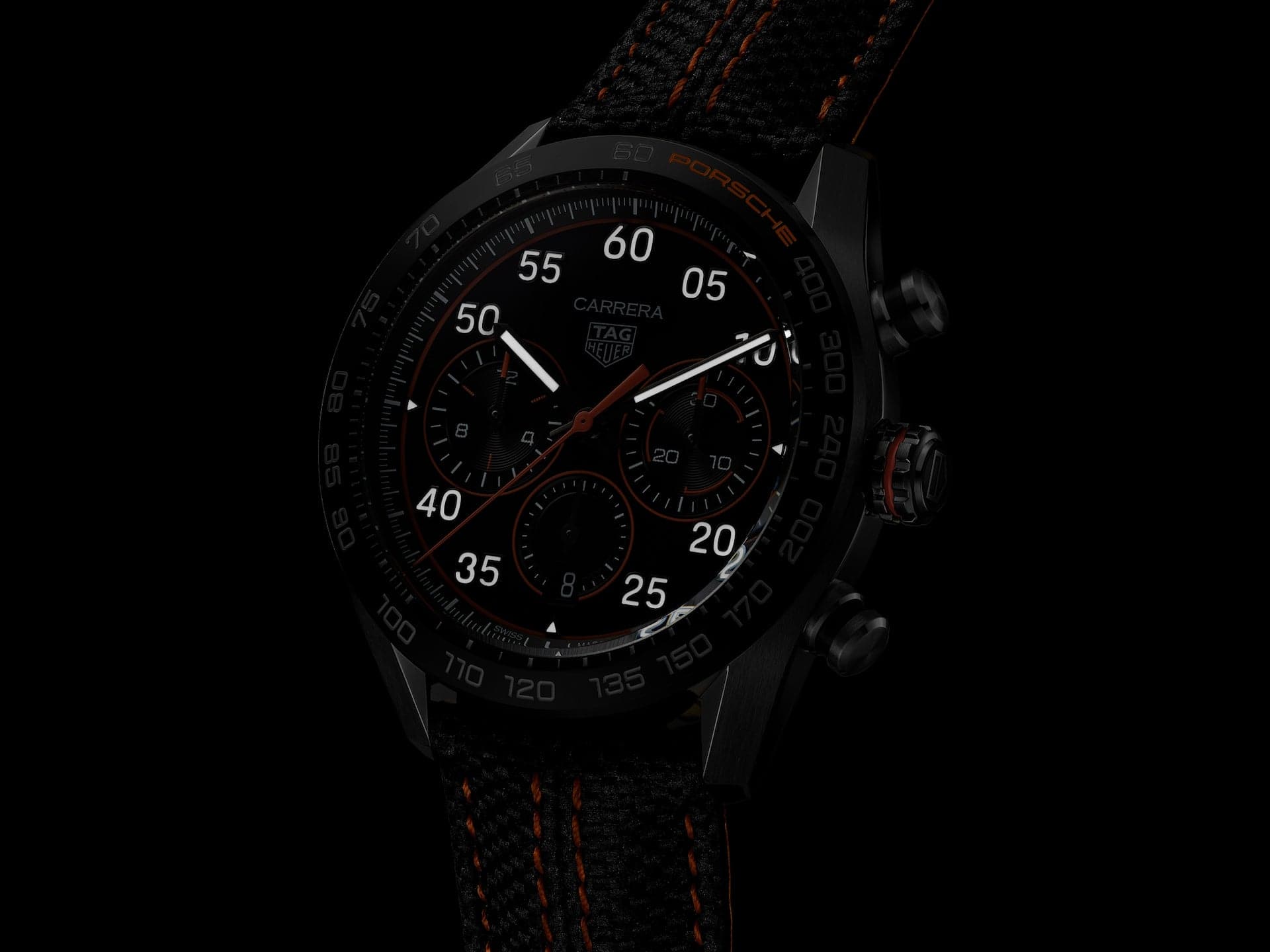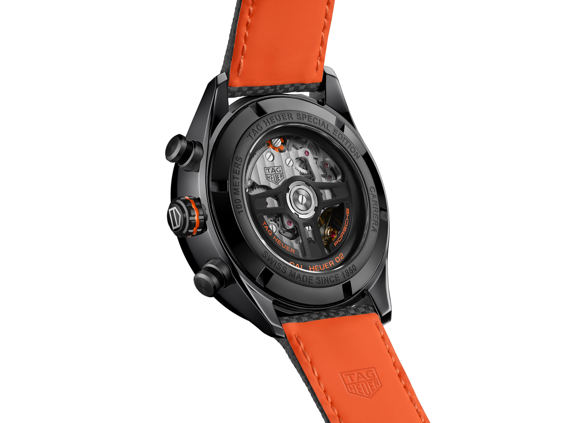 Speed is the name of the game in this TAG Heuer Carrera Porsche Special Edition. Paying tribute to the passion for racing shared by TAG Heuer and Porsche, it distills a bright orange inspired by the color of the sparks of heat made by the car on the asphalt. Victory is on the horizon
