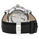 Stainless steel case with a black leather strap. Fixed stainless steel bezel. Black dial with luminous hands and stick hour markers hour markers. Arabic numerals mark the 6, 9 and 12 o'clock positions. Minute markers around the outer rim. Dial Type: Analog. Luminescent hands and dial markers. Day and date display at the 3 o'clock position. Automatic movement. Scratch resistant sapphire crystal. Screw down crown. Skeleton case back. Case diameter: 39 mm. Case thickness: 7.5 mm. Round case shape. Fold over clasp. Water resistant at 200 meters / 660 feet. Functions: date, day, sport, hour, minute