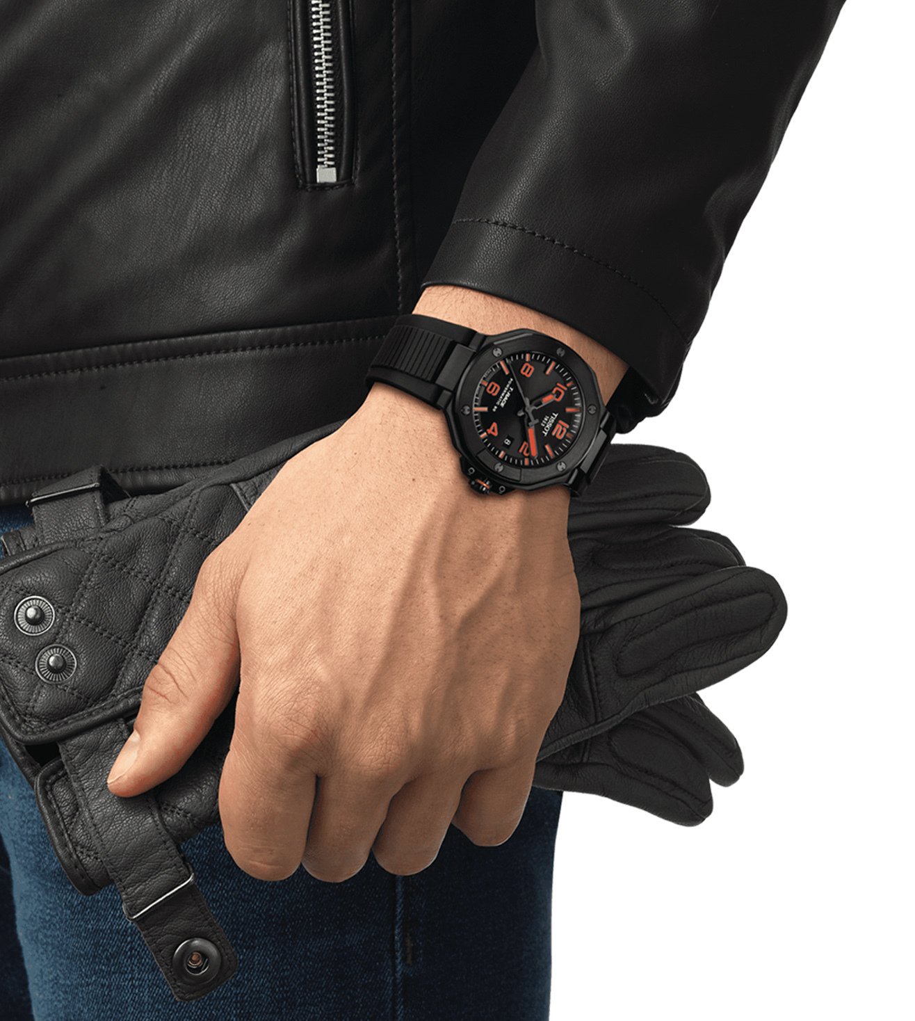 Motorbikes are more than a means of transportation. They are a lifestyle – and bikers can demonstrate that belonging and passion with the T-Race collection. The see-through caseback is a window to the heartbeat of precision watchmaking: equipped with the Powermatic 80 featuring a Nivachron balance spring, the T-Race Automatic redefines what's possible on the road. The bezel and crown protector are inspired by the brake disc and its caliper. Embrace a riding experience that seamlessly merges motorsports passion and innovation.