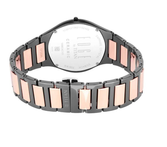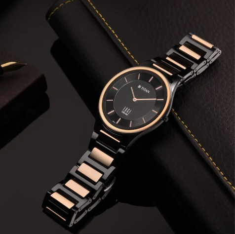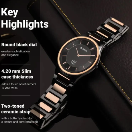 Titan Edge Ceramic Quartz in Midnight Gold with Black Dial Watch for Men