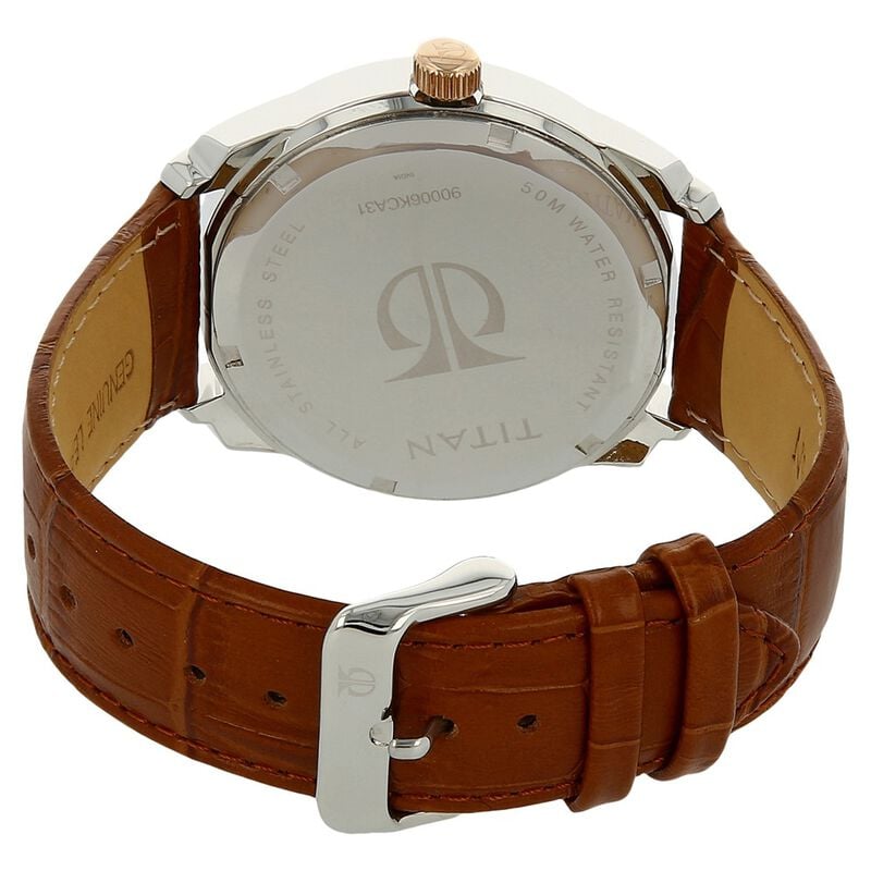 Titan Quartz Analog with Date Silver Dial Leather Strap Watch for Men