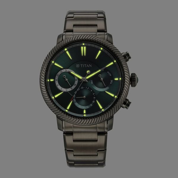 Titan Stellar Quartz Multifunction Green Dial Stainless Steel Strap Watch for Men
